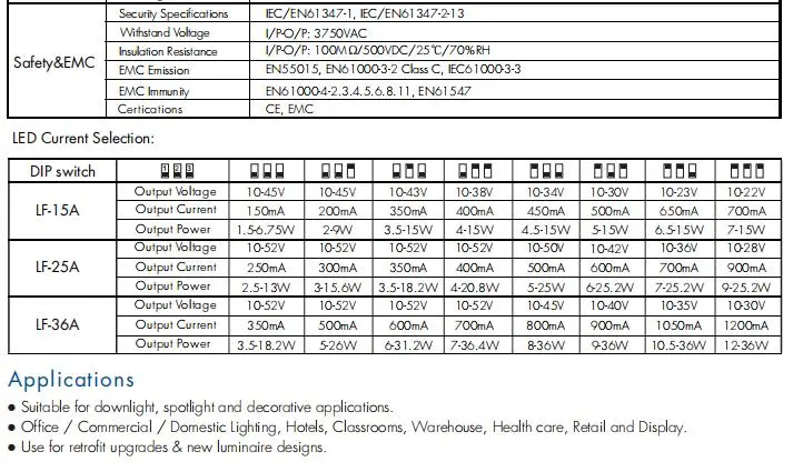 Stabiler LED-Betrieb: Bietet einen festen, regulierten Ausgangsstrom (z. B. 700 mA, 1050 mA) über einen weiten Ausgangsspannungsbereich. Dies ist wichtig für die direkte Ansteuerung von LED-Arrays, um eine gleichmäßige Helligkeit sicherzustellen und ein thermisches Durchgehen zu verhindern.