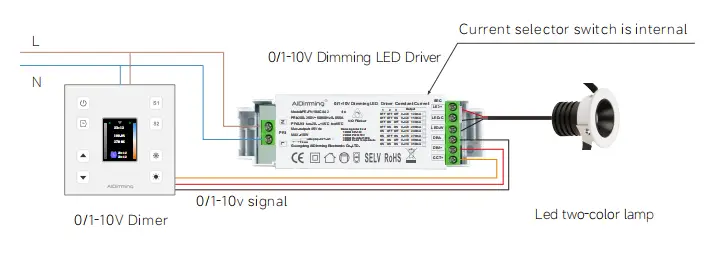 1. Wenn der 0/10-V-Dimmer auf maximal 10 V eingestellt ist, erreicht der Ausgangsstrom 100 % der Ausgangsleistung und die Helligkeit erreicht 100 %. Wenn der 0-10-V-Dimmer auf 0 V eingestellt ist, beträgt der Strom