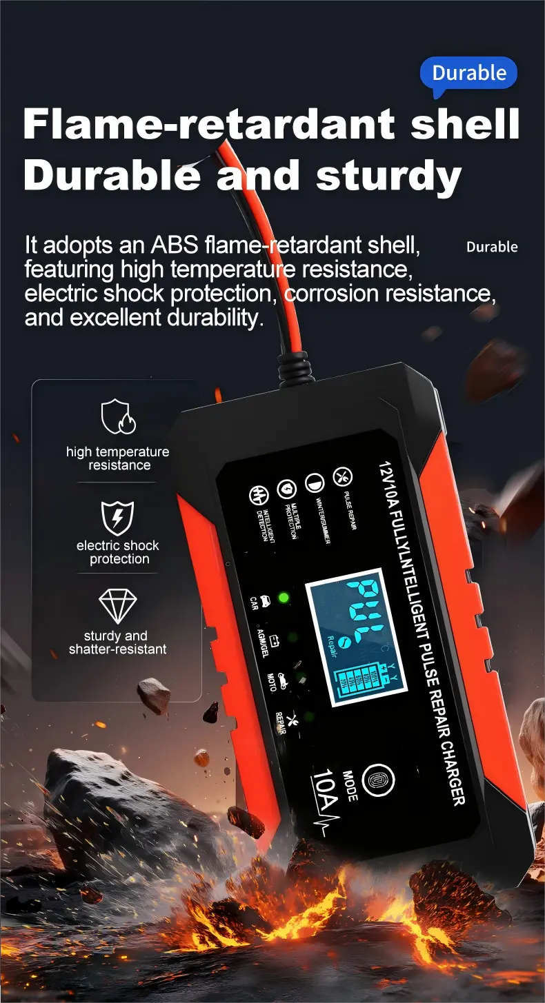 2. Intelligente Sicherheit und Batterieschutz: Integrierte Schutzfunktionen gegen Überladung, Kurzschlüsse, Verpolung und Überhitzung sorgen für vollständige Sicherheit. Es nutzt einen 4-stufigen intelligenten Ladevorgang (Vorladung, konstanter Strom, konstante Spannung, Erhaltungsladung) und unterbricht automatisch die Stromversorgung, wenn der Akku vollständig geladen ist, wodurch die Lebensdauer des Akkus im Vergleich zu herkömmlichen Ladegeräten um bis zu 30 % verlängert wird.