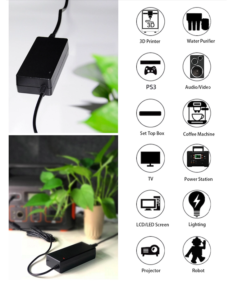 * Weitere Einheiten für die 120-W-Serie: 12 V/15 V/20 V/24 V/36 V/48 V verfügbar * Sicherheit: OCP/OVP/OTP, SCP, automatische Überlastabschaltung, Überspannungsabschaltung, automatische thermische Abschaltung. * Umfangreiche Kompatibilitäten: LED-Lichtleisten, 3D-Drucker, Amateurfunk-Transceiver, CCTV-Kameras, Auto-Subwoofer-Verstärker, Audioverstärker, WLAN-Router, ADSL-Cats, Luftbefeuchter, HUB, Tastatur, BT-Lautsprecher, Monitor, Webcam, DVR, NVR, Audio-/Video-Stromversorgung