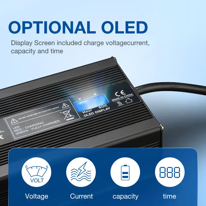 Wenn die Temperatur des Transformatorkerns 85 °C überschreitet, sinkt die Leistung des Ladegeräts auf die Hälfte des Stroms. Nach der Temperatur Tropfen, kann es sich von selbst erholen. |