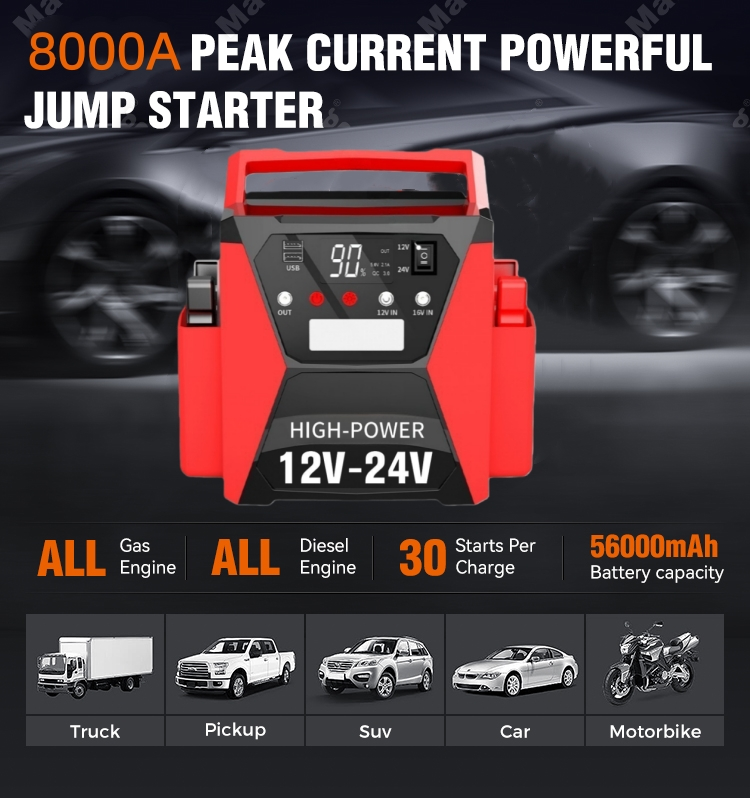 STARWELL stellt sein leistungsstarkes intelligentes 12-V-/24-V-Auto-Starthilfe-Batterieladegerät vor, ein Wendepunkt für Fahrzeugbesitzer, die Zuverlässigkeit und Intelligenz bei der Batteriewartung und dem Notstart suchen. Ausgestattet mit einem Spitzenstrom von 8.000 A und einem Startstrom von 4.000 A kombiniert dieses intelligente Dual-Voltage-Batterieladegerät robuste Leistung mit intelligenter Technologie und eignet sich daher für alle Gasmotoren und Dieselmotoren bis zu 15 l und deckt Autos, LKWs, Wohnmobile, Motorräder, Boote und sogar schwere Nutzfahrzeuge ab.