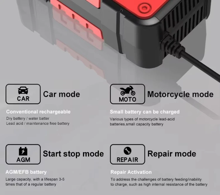 Reparaturmodus: Die integrierte Impulsreparaturfunktion hilft, sulfatierte Batterien wiederherzustellen und die Batterielebensdauer zu verlängern.