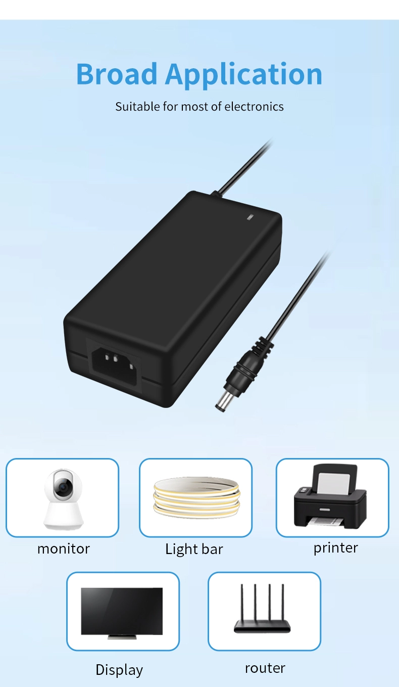 Das STARWELL 12V 8A 96W Desktop-Netzteil ist eine hocheffiziente Stromversorgungslösung, die für leistungsstarke elektronische Geräte entwickelt wurde. Mit einer genauen Ausgangsspannung von 12 V ± 5 % und einem Umwandlungswirkungsgrad von 95 % wird es zum idealen Stromversorgungspartner für Industriegeräte, medizinische Instrumente, Sicherheitssysteme, elektronische Terminals auf Desktop-Ebene und andere Szenarien. Dank seines Weitspannungseingangsdesigns (AC 100–240 V, 50/60 Hz) ist es mit globalen Stromnetzstandards kompatibel, sodass keine zusätzlichen Konverter erforderlich sind.