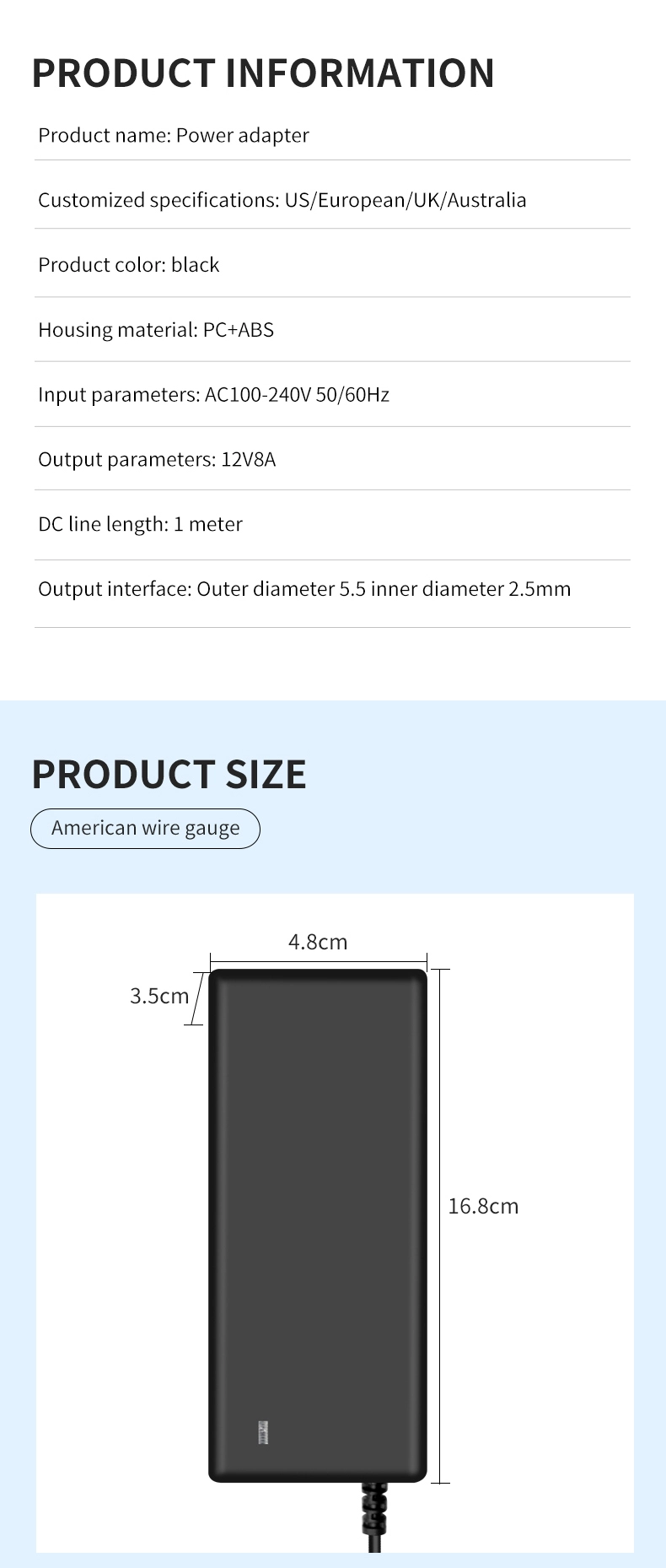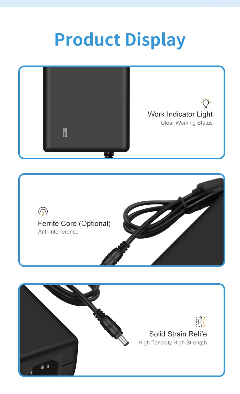 Bei einer Nennleistung von 96 W stabilisiert sich der Ausgangsstrom des 96-W-Netzteils bei einem Spitzenwert von 8 A und die Spannungsgenauigkeit wird auf ±5 % geregelt (Leerlaufspannung: 12,1 V; Volllastspannung: 11,8 V). Es kann den gleichzeitigen Stromversorgungsbedarf mehrerer Geräte decken (z. B. 2 parallele 48-W-Geräte). Das Ausgangskabel mit reinem Kupferkern sorgt für einen Spannungsabfall von ≤0,3 V und sorgt so für eine ungedämpfte Leistung bei der Hochstromübertragung.