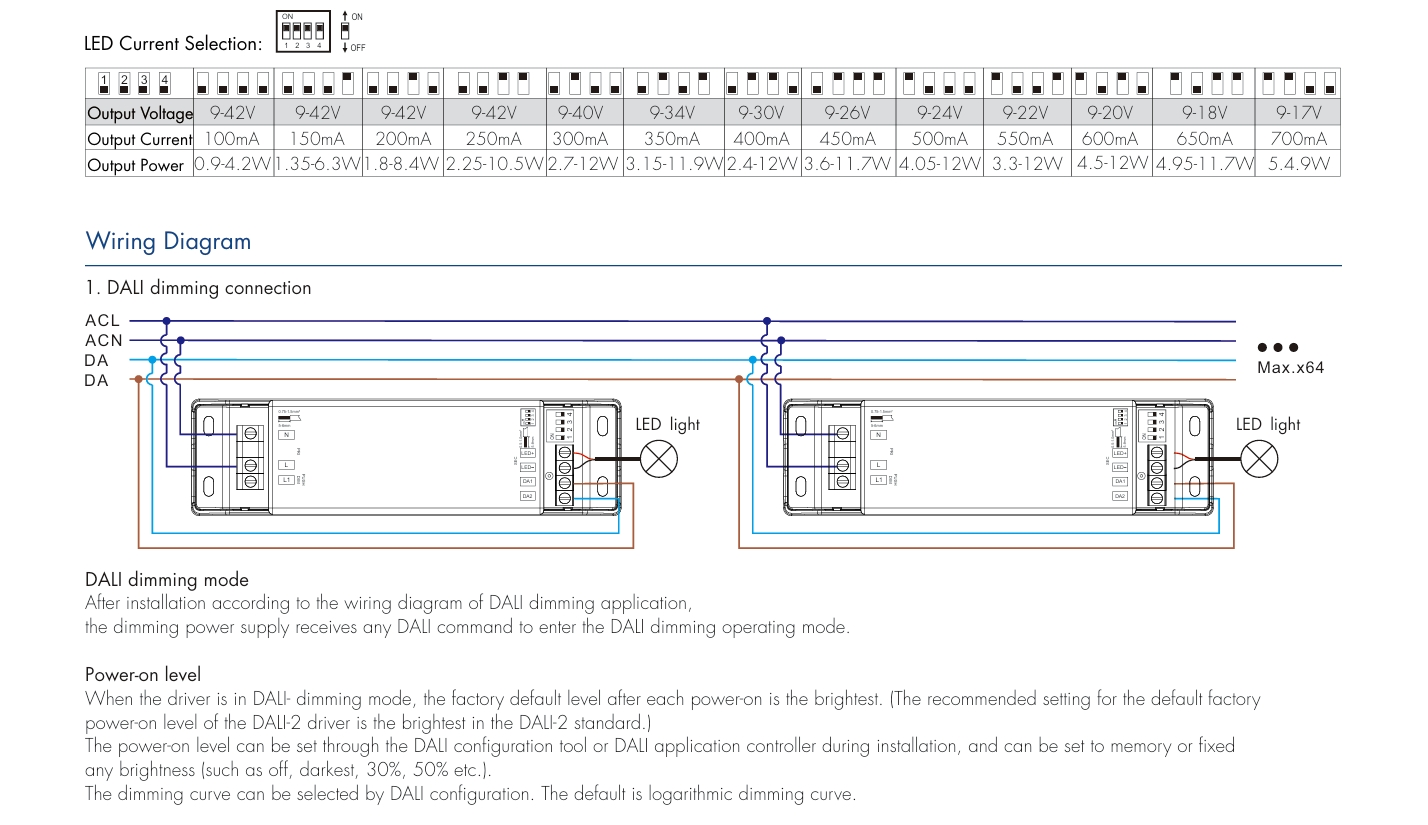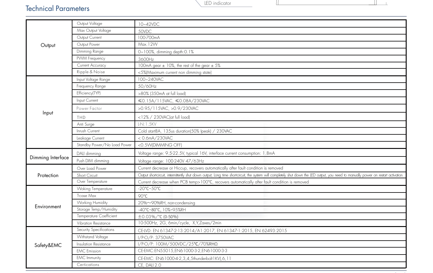 Überlegene Energieeffizienz: Wenn der dimmbare LED-Treiber STARWELL DALI unter Volllast betrieben wird, beträgt der PF > 0,95 bei Volllast, 87 % maximale Effizienz und ≤ 0,24 mA Leckstrom, entsprechend den ErP-Standards.