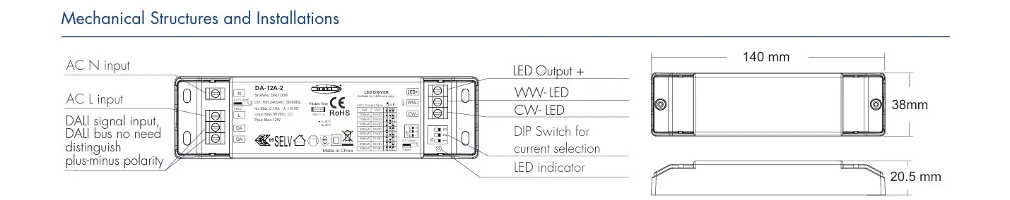 Dieser dimmbare LED-Treiber ist in einem kompakten IP20-Gehäuse untergebracht und vereinfacht die Installation selbst in engen Räumen wie LED-Profilen oder Leuchtengehäusen. Durch die Kombination von Konstantstromausgang, breiter CCT-Abstimmung und DALI-2-Kompatibilität nach Industriestandard dient er als idealer und zukunftssicherer Treiber für Tunable-White-Downlights, lineare Leuchten und Architekturbeleuchtung – und lässt sich als vielseitiger dimmbarer Konstantstrom-DALI-CCT-LED-Treiber nahtlos in moderne intelligente Beleuchtungsökosysteme integrieren.