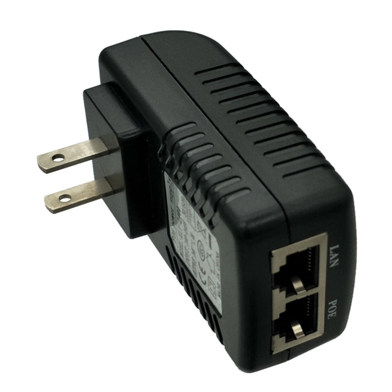Der 12-V-Power-Over-Ethernet-1000-Mbps-PoE-Injektor mit LED-Anzeige eignet sich für die Stromversorgung von IP-Kameras bei gleichzeitiger Übertragung von Videodaten über ein einziges Ethernet-Kabel.