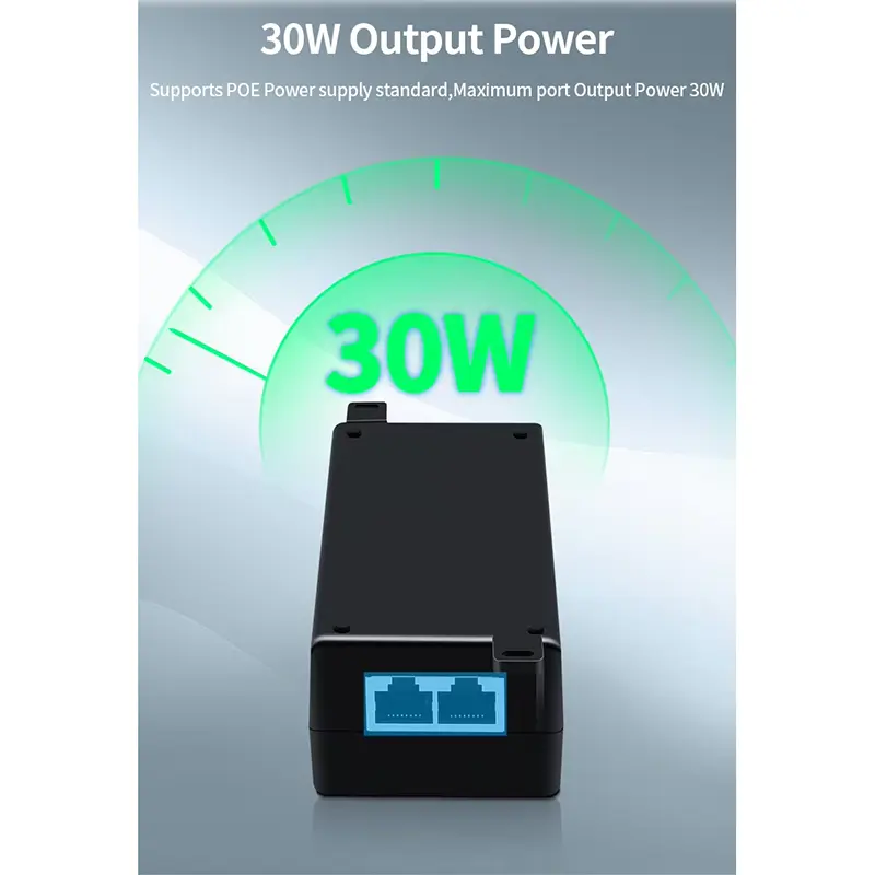 Langlebige Konstruktion: Der leistungsstarke 30-W-PoE-Injektor verfügt über eine nahtlose Ultraschallverbindung für besseren Schutz vor Staub und physischer Belastung.