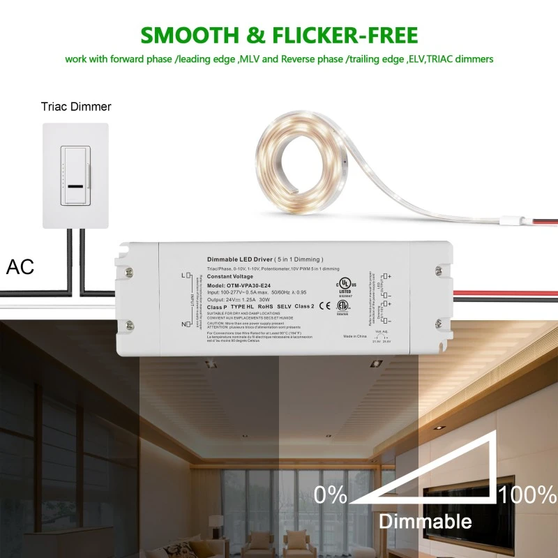 1. Präzises 0-10-V-Dimmen: Der STARWELL 0-10-V-Dimm-LED-Treiber unterstützt sanftes Dimmen von 0 % bis 100 % Helligkeit mit einer Dimmauflösung von ≤ 1 %, wodurch er sich an verschiedene Lichtszenenanforderungen anpassen kann.