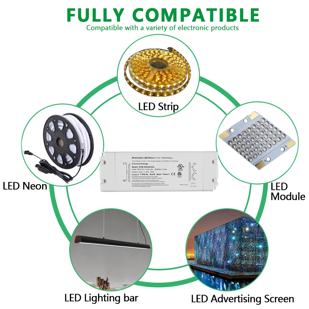 Der elegante 24-V-30-W-0-10-V-Konstantspannungs-LED-Treiber von STARWELL Factory kann eine maximale Ausgangsleistung von bis zu 30 W liefern und wurde speziell für eine nahtlose Dimmsteuerung von 0 bis 10 V entwickelt. Es verfügt über einen stabilen Spannungsausgang mit einem Welligkeitskoeffizienten von ≤ 120 mVp-p und gewährleistet so die flimmerfreie Beleuchtungsleistung von LED-Leuchten. Sein Eingangsspannungsbereich ist groß (100–240 V AC, 50/60 Hz), mit einem Umwandlungswirkungsgrad von bis zu 88 %, was einen energiesparenden Betrieb ermöglicht. Es entspricht außerdem den weltweiten Spannungsstandards. Dieser 0-10V-LED-Treiber ist mit verschiedenen Schutzfunktionen ausgestattet, um einen zuverlässigen und sicheren Einsatz in verschiedenen Innen- und Außenbeleuchtungsanwendungen zu gewährleisten.