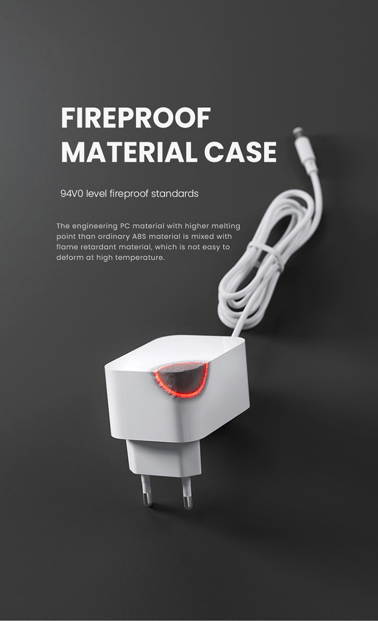 Der Kern seiner Leistung liegt im stabilen 12V 2A 24V1A Netzteilausgang. Diese präzisen elektrischen Spezifikationen stellen sicher, dass Ihre Geräte eine gleichmäßige und saubere Stromversorgung erhalten, schützen sie vor möglichen Schäden durch Spannungsschwankungen und verlängern ihre Lebensdauer. Ihre Sicherheit ist unser oberstes Anliegen. Aus diesem Grund sind unsere Adapter stolz darauf, die GS-/CE-/ERP-/ROHS-Zertifizierungen erhalten zu haben. Diese strengen internationalen Zertifizierungen sind Ihre Garantie dafür, dass Ihre Produkte strenge Tests zur elektrischen Sicherheit, elektromagnetischen Verträglichkeit und Umweltverträglichkeit bestanden haben, sodass sie für den Einsatz in verschiedenen Märkten auf der ganzen Welt geeignet sind. Darüber hinaus besteht die Struktur des Adapters aus hochwertigem, feuerfestem PC-Material und bietet eine wichtige Schutzschicht gegen Überhitzung und potenzielle Brandgefahren.