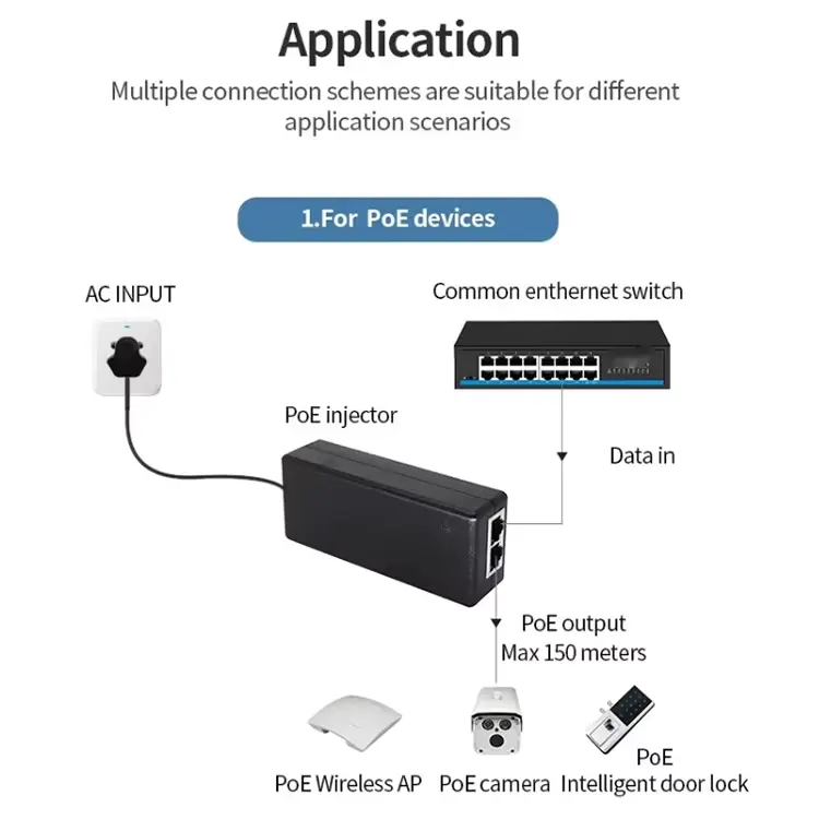 Dieser passive 24-V-1-A-Gigabit-POE-Injektor wird häufig verwendet in: