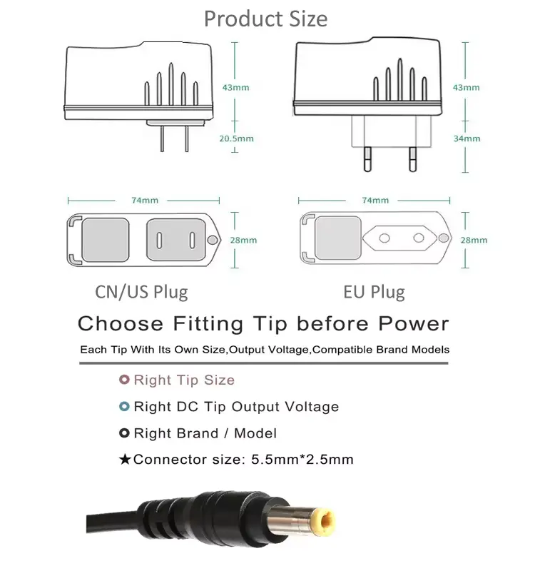 Der hochwertige 24-W-Netzteiladapter wird vom chinesischen Hersteller Starwell angeboten. Dieser Adapter verfügt über verschiedene Steckertypen, z. B. US-, UK-, EU- und AU-Stecker.