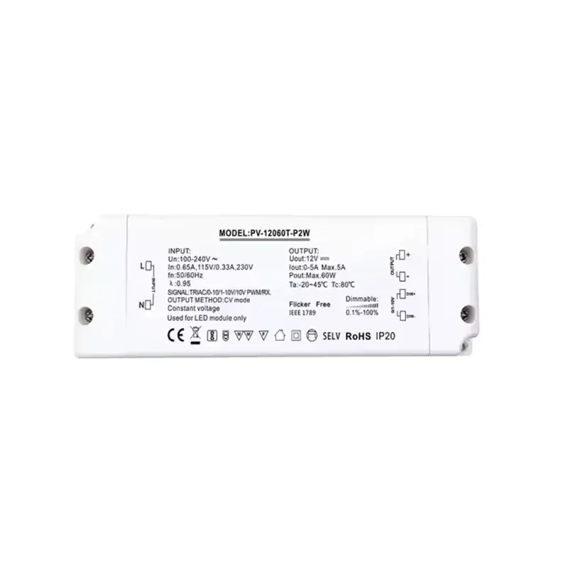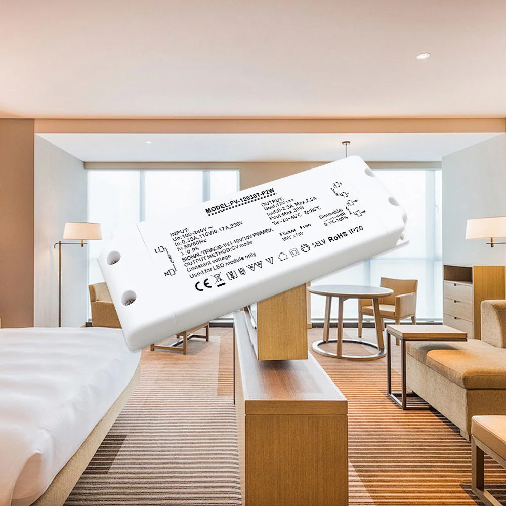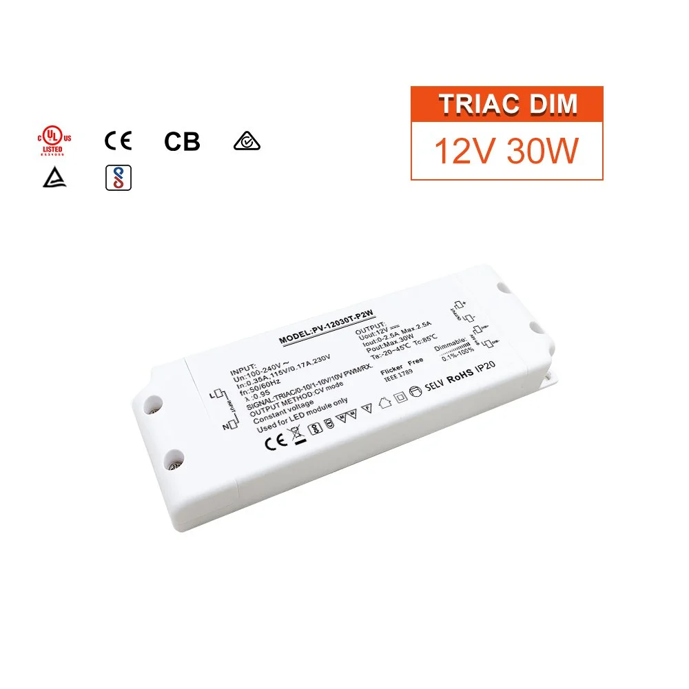 Als stabiler Triac-Dimm-LED-Treiber mit Konstantspannungsnetzteil liefert er einen konstanten 12-V-Gleichspannungsausgang. Dieses dimmbare 12-V-30-W-Triac-Netzteil verfügt über hochwertige Komponenten und ein fortschrittliches Schaltungsdesign, das eine stabile Ausgangsspannung über den gesamten Dimmbereich gewährleistet und das Flackern von Lichtern grundsätzlich eliminiert. Es handelt sich um einen wirklich flimmerfreien Triac-Dimm-LED-Treiber für den Innenbereich. Seine flackerfreie Funktion sorgt nicht nur für eine angenehme und gesunde visuelle Umgebung, sondern schützt auch wirksam empfindliche LED-Lichtquellen und -Module und verlängert so die Gesamtlebensdauer der Beleuchtungskörper.