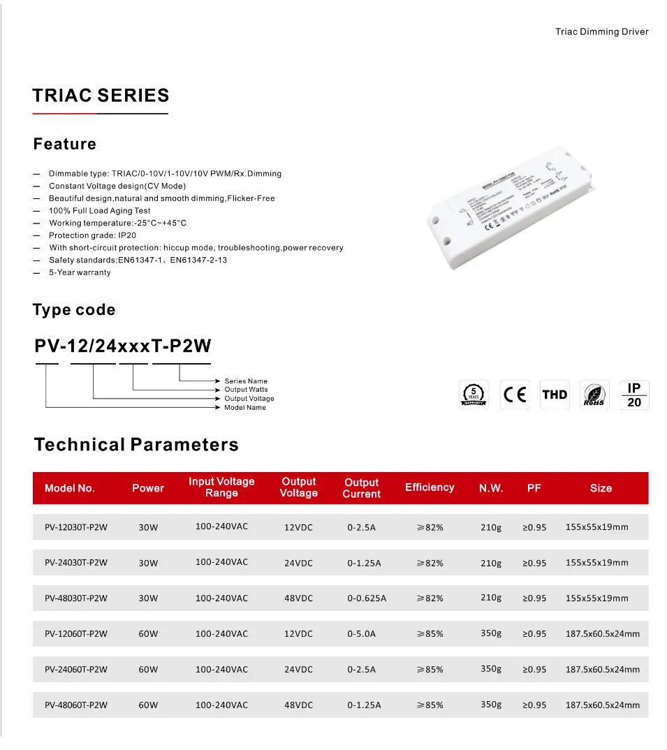 TRIAC 0-10V dimmbares 30W-Konstantspannungsnetzteil. Starwell bietet eine 5-Jahres-Garantie für eine langfristige Qualitätssicherung. Seine Kernkomponenten entsprechen alle Industriestandards und zeichnen sich durch hervorragende Überspannungsfestigkeit, Hochtemperaturbeständigkeit und langfristige Betriebszuverlässigkeit aus. Dieser 30-W-Konstantspannungs-TRIAC-Dimm-LED-Treiber, der Dual-Mode-Dimmung, Konstantspannungsausgang, flimmerfreie Technologie und lange Lebensdauer integriert, ist eine ausgezeichnete Wahl für alle, die hochwertige Lichteffekte suchen. Gerne können Sie sich erkundigen.