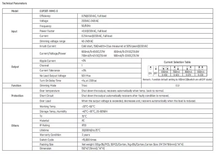 Als professioneller Hersteller und Lieferant von LED-Treibern in China ist unser 30-W-Triac-Dimm-LED-Treiber mit Konstantstrom ein Stromumwandlungsgerät, das speziell für LED-Beleuchtungssysteme mittlerer bis hoher Leistung entwickelt wurde. Es verwendet eine fortschrittliche Konstantstrom-Steuerungstechnologie, um einen stabilen Betrieb der LED-Perlen bei Nennstrom zu gewährleisten, wodurch die Lebensdauer der Lampe effektiv verlängert und die Konsistenz der Lichteffizienz verbessert wird. Der LED-Treiber mit Konstantstromdimmung eignet sich für Beleuchtungsszenarien mit hohem Bedarf, z. B. gewerbliche Beleuchtung, Industriebeleuchtung, Außenflutlichter und Pflanzenwachstumslichter.