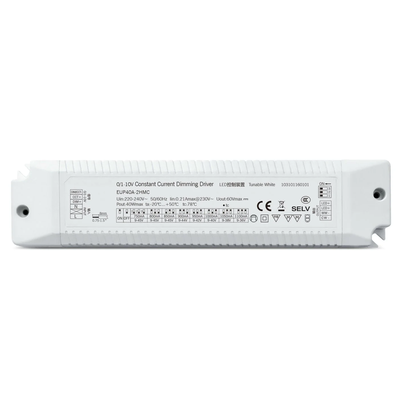 Classy 40W 0-10VConstant Current CCT Dimmbare LED-Treiber eignen sich für gewerbliche Beleuchtung, High-End-Wohnhäuser, Museen, Hotels und andere Szenarien mit hohen Anforderungen an Lichtqualität und dynamische Steuerung und sind ideale Treiberlösungen für eine intelligente und energiesparende Beleuchtung. Dieser dimmbare 40-W-0-10-V-Konstantstrom-CCT-LED-Treiber vereint hohe Effizienz, flexible Steuerung und hervorragende Leistung und erfüllt vollständig die Gesamtanforderungen moderner LED-Beleuchtungssysteme für präzises Dimmen und Farbtemperaturmanagement.