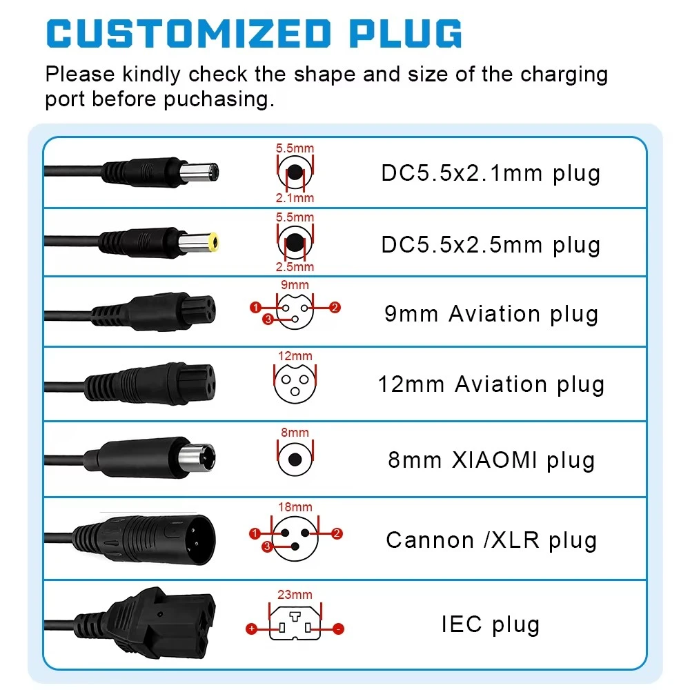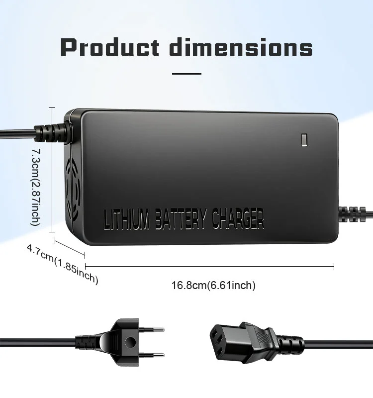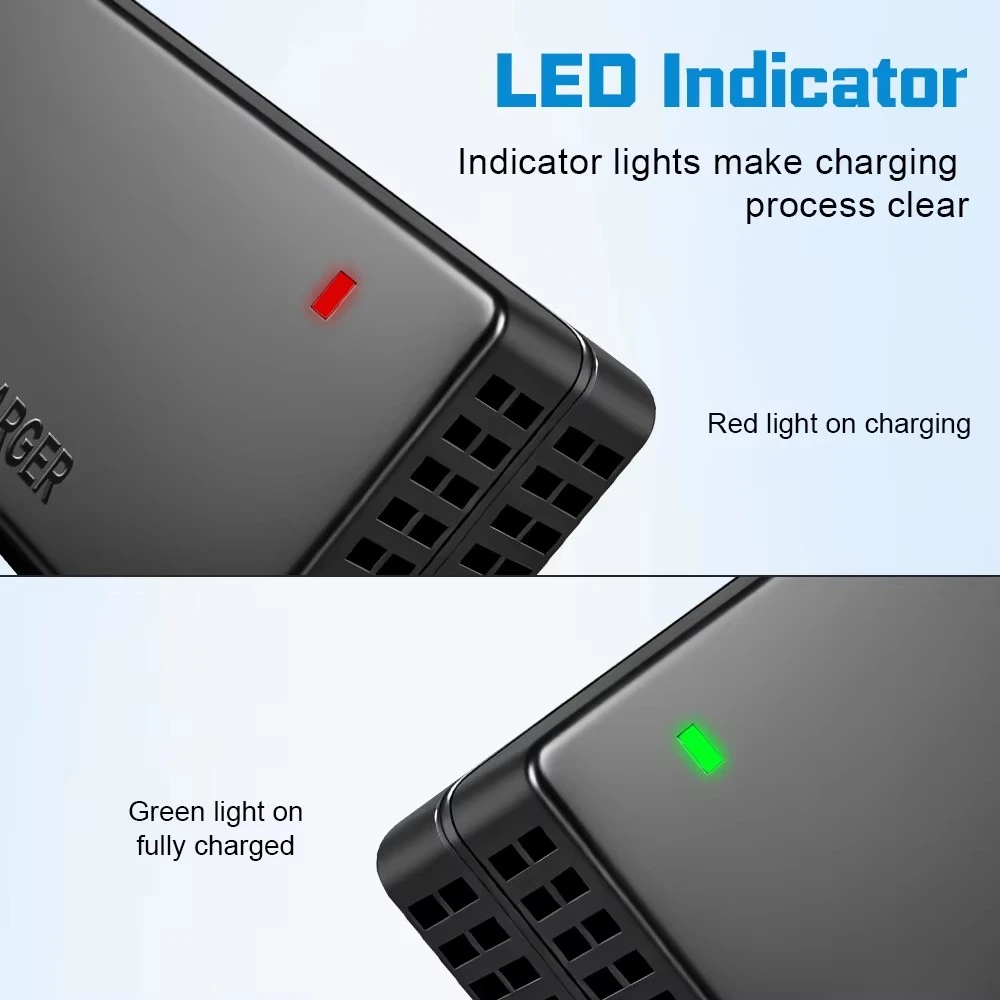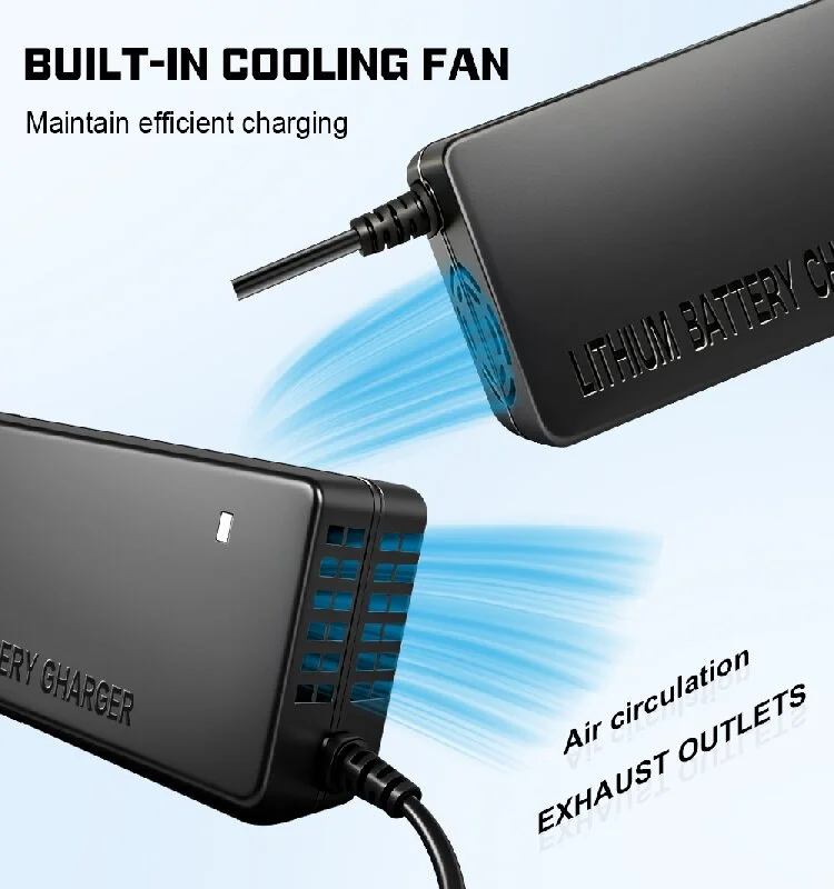 Trotz seiner robusten Leistung verfügt das Ladegerät über ein kompaktes und leichtes Design, das den Transport erleichtert. Ganz gleich, ob Sie ein Ladegerät für zu Hause oder im Büro benötigen oder es zum Aufladen unterwegs in Ihrem Rucksack aufbewahren möchten – dank seiner Tragbarkeit haben Sie immer Zugang zu sicherer und zuverlässiger Energie. Dieses langlebige und benutzerfreundliche 48-V-Ladegerät ist der ideale Energiebegleiter für die Aufrechterhaltung der Gesundheit und Leistung Ihrer Lithium-Ionen-Batterien.