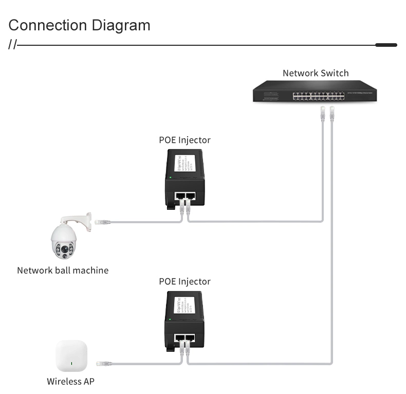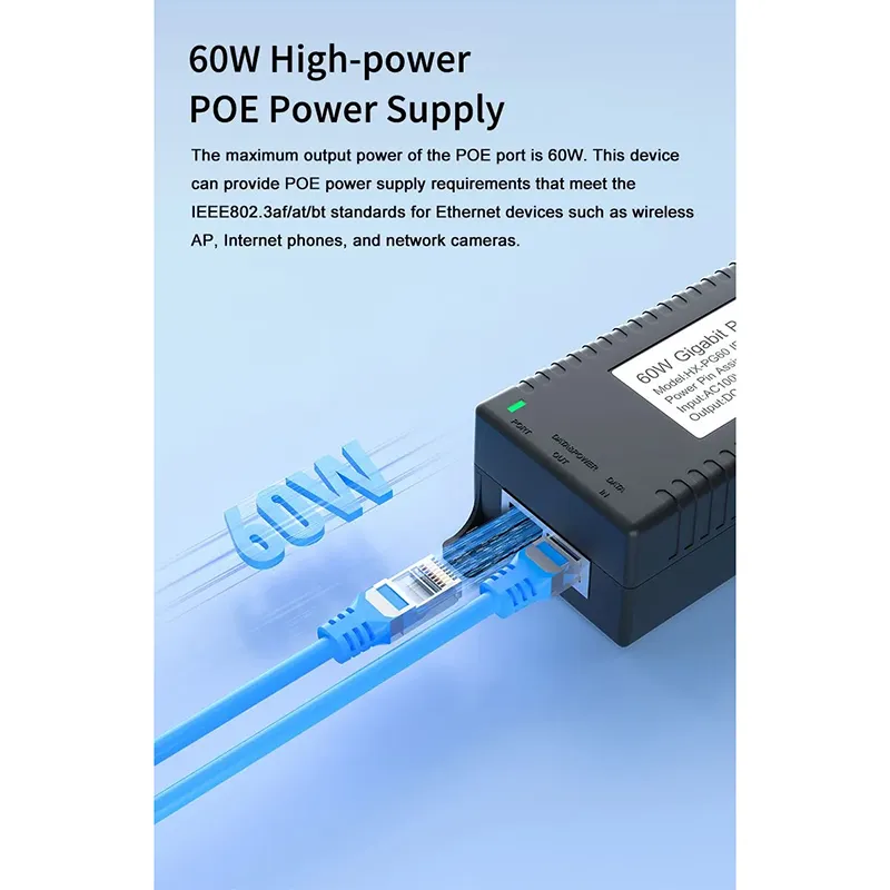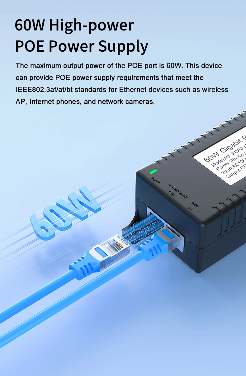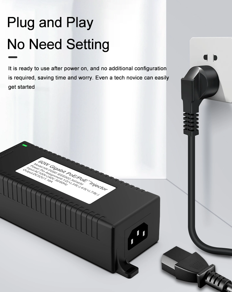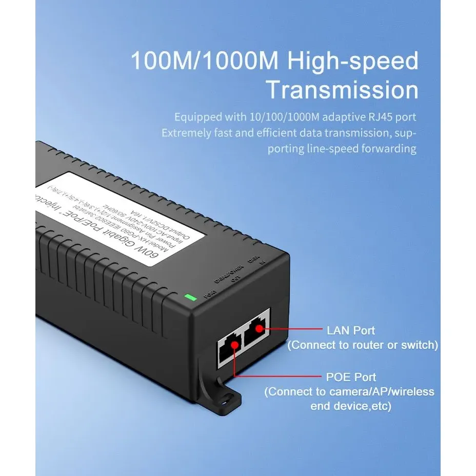 Sicherheitsüberwachung: Der Gigabit-60-W-Desktop-POE-Injektor für IP-Kamerasicherheit und Netzwerkgeräte sorgt für eine stabile Stromversorgung von IP-Kameras und PTZ-Kameras.