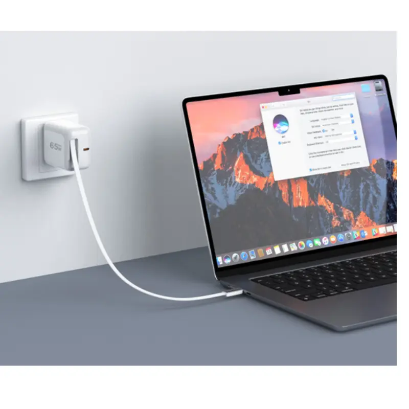 65-W-Hochgeschwindigkeits-Stromversorgung: Ermöglicht schnelles Aufladen von Laptops, Tablets und Smartphones mit fortschrittlicher PD 3.0-Technologie und lädt ein MacBook Pro in nur 45 Minuten zu 50 % auf.