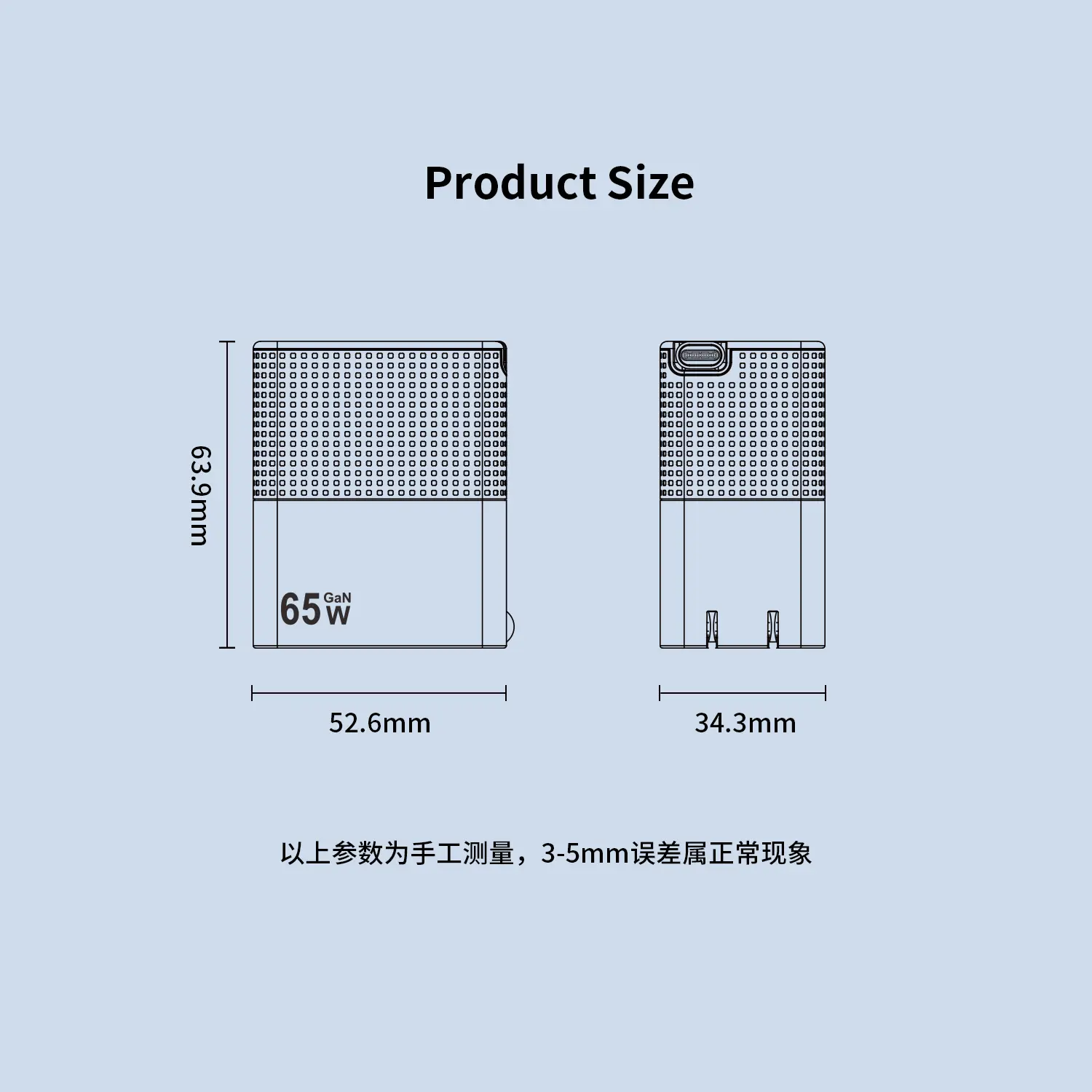 65-W-PD-Ladegerät mit handlichem USB-C-Kabel. Spezifikation: