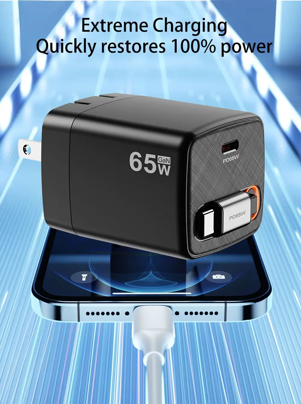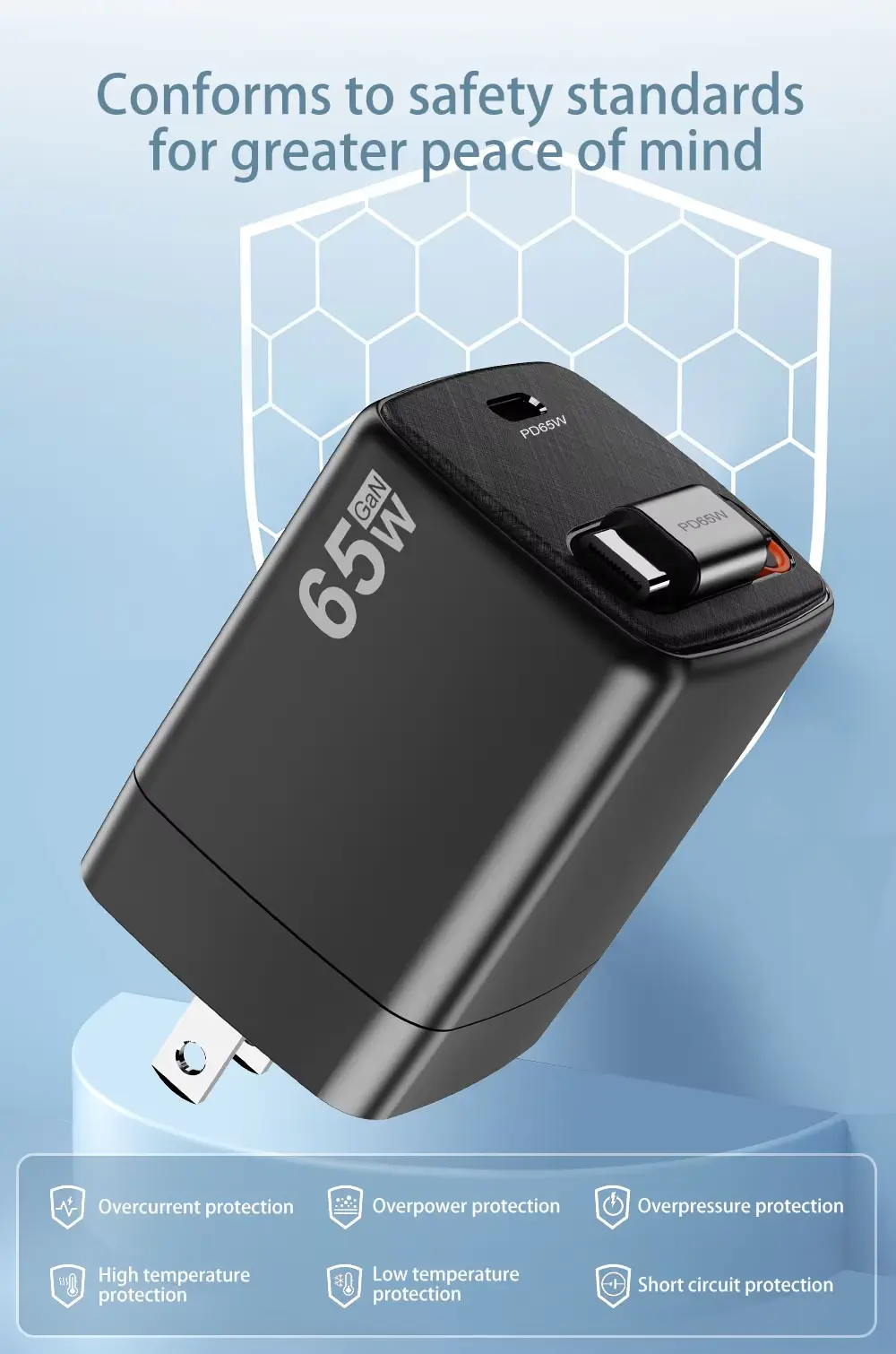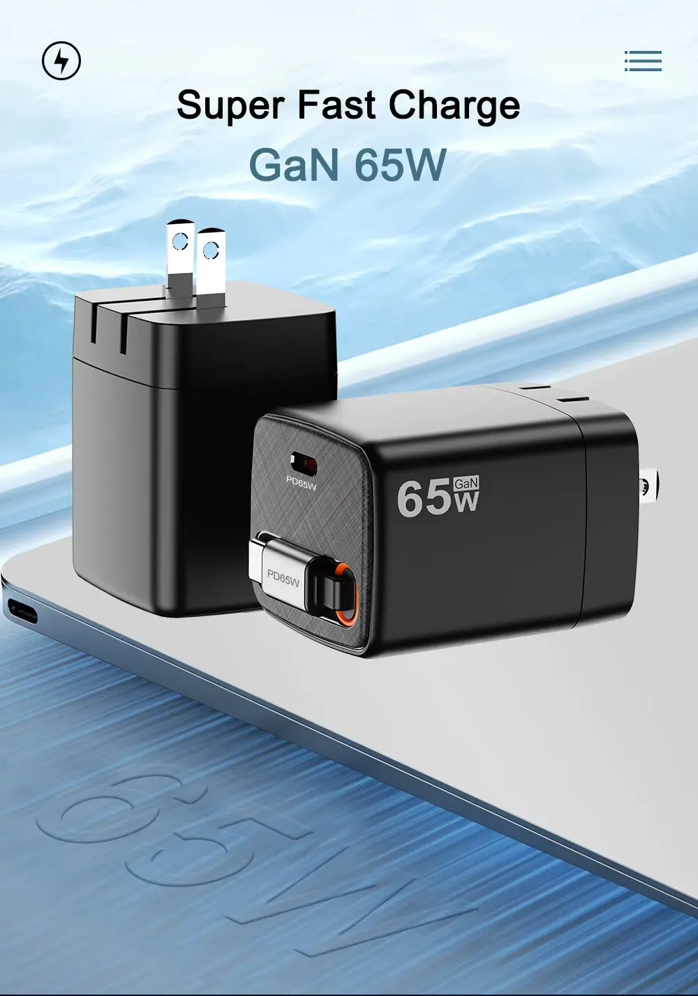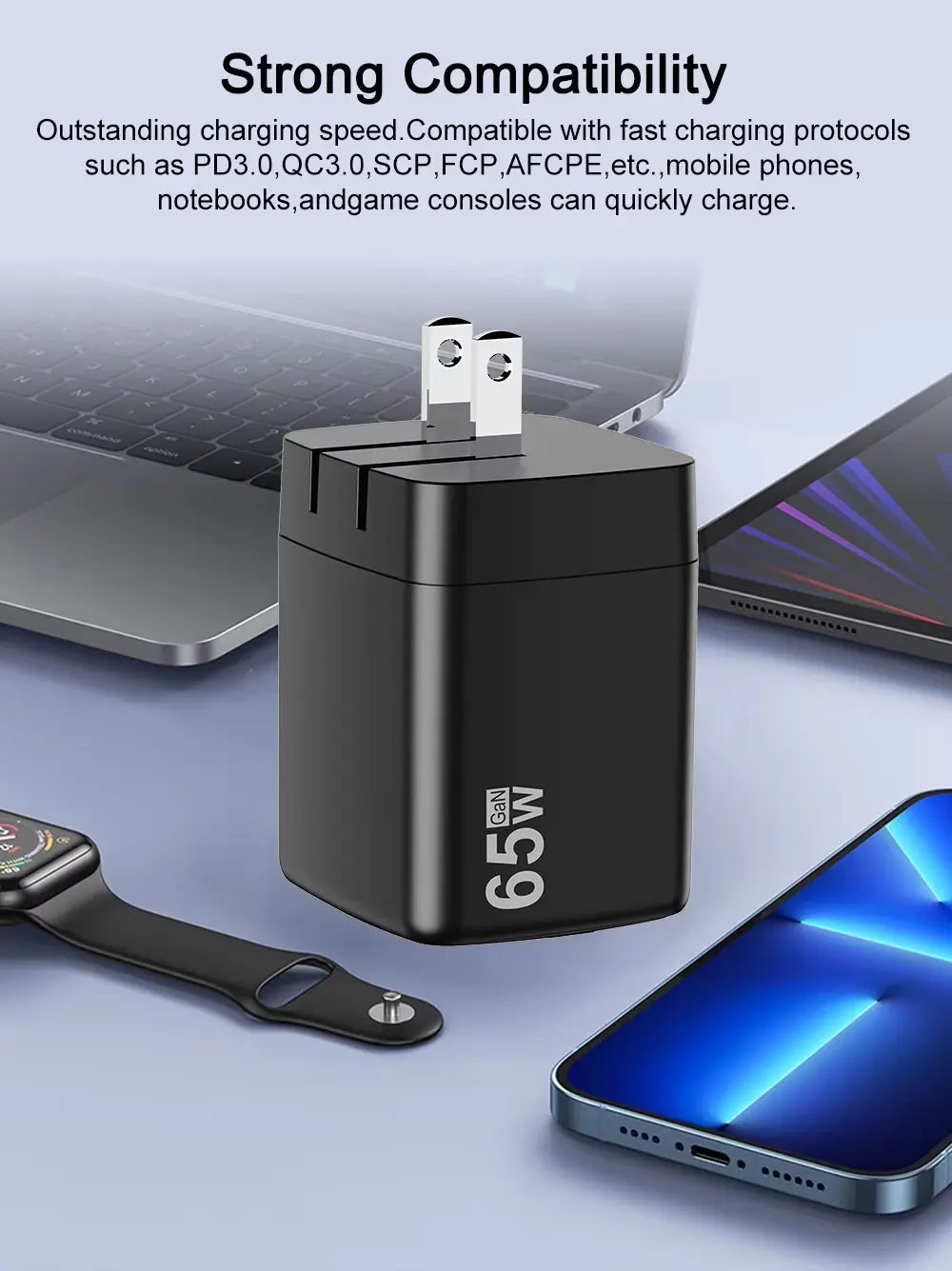 Anpassbares Logo Mini 65W PD Gan USB C Ladegerät, faltbar, US-Stecker, USB-Reiseadapter, Handy-Ladegerät |