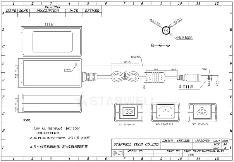 OEM: DC-Kopfgröße, Kabellänge, Produktfarbe, LOGO usw