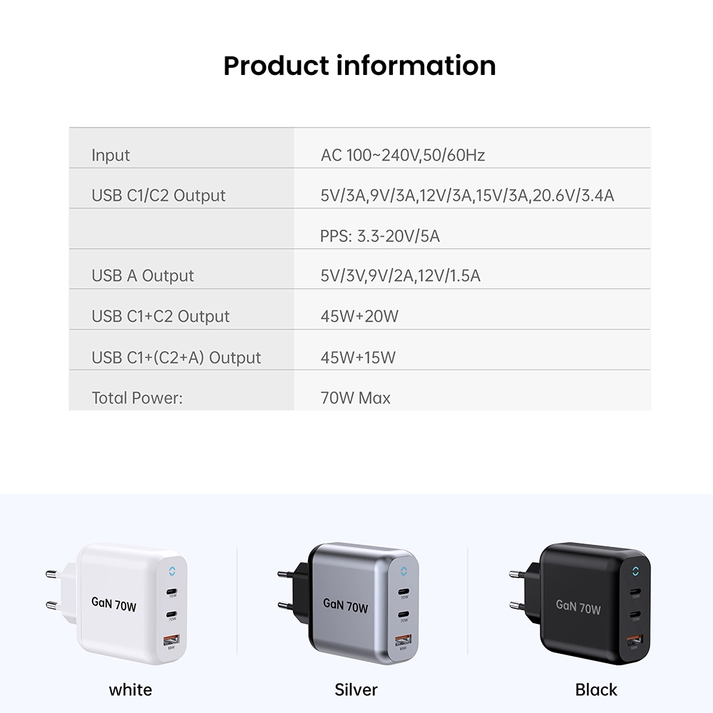 70-W-PD-Schnellladegerät für Latpop-Tablet-Spezifikation