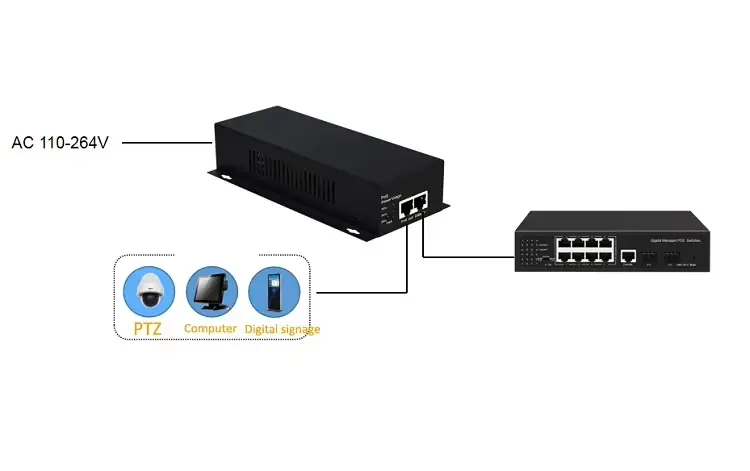 Verkabelungsanforderungen: Für die volle 90-W-Lieferung über größere Entfernungen (bis zu 100 m) wird dringend empfohlen, ein Cat6a-Ethernet-Kabel (oder höher) zu verwenden, um Stromverluste und Wärmeentwicklung zu minimieren.
