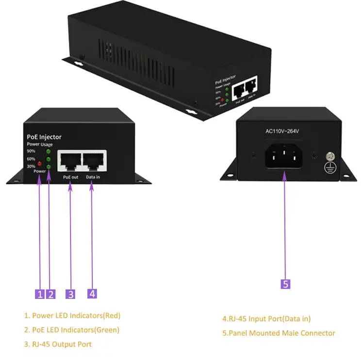 Als professioneller Netzteilhersteller in China hat Starwell einen 90-W-IEEE802.3bt-Gigabit-PoE-Injektor mit Metallgehäuse eingeführt, der vollständig dem IEEE 802.3bt-Standard entspricht. Es unterstützt einen 52-V-Ausgang, liefert eine maximale Leistung von 90 W pro Port und ist abwärtskompatibel mit den 802.3af/at-Standards.