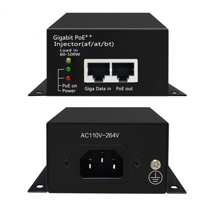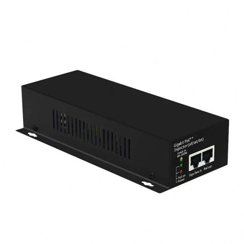 Der hochwertige aktive 60-W-POE-Injektor wird vom chinesischen Hersteller Starwell angeboten. Es verfügt über einen 10/100/1000-Mbit/s-Dateneingangsport und einen PoE-Ausgangsport (Daten+Strom). Es unterstützt vollständig die alternativen Polaritätsanforderungen von 802.3bt und nutzt alle vier Paare (1/2+, 3/6- & 4/5+, 7/8-) für gleichzeitige Datenübertragung und 48-V-DC-Stromversorgung.