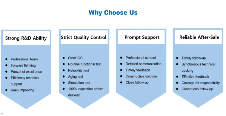 Unsere Produkte orientieren sich strikt an internationalen Standards und hohen Industriestandards vom Design über die Prüfung bis hin zur Massenproduktion und entsprechen internationalen Standards wie CE, FCC, RoHS, ETL usw., um Kompatibilität und Konformität auf dem Weltmarkt sicherzustellen.