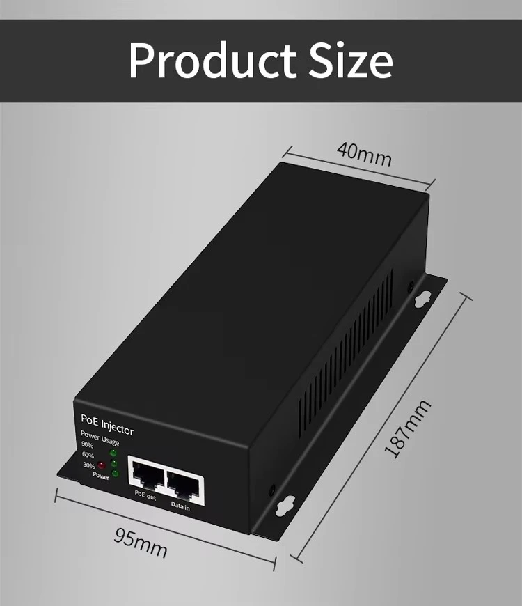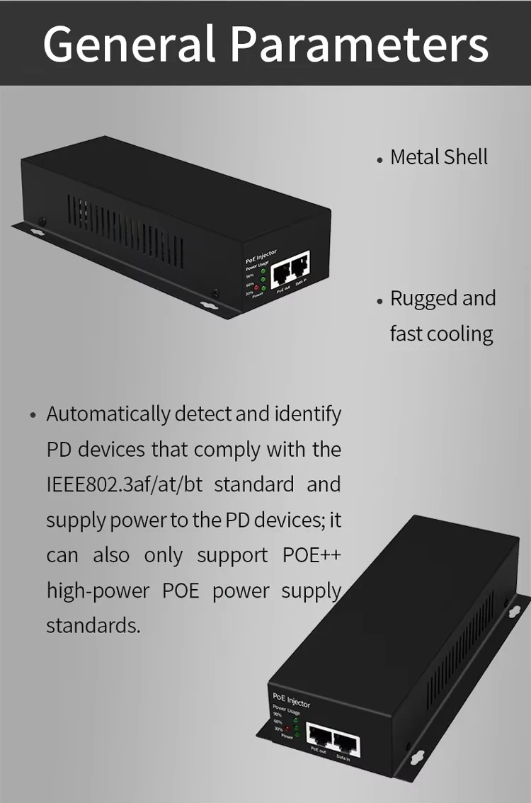 Dieser auf Vielseitigkeit ausgelegte Injektor ist abwärtskompatibel mit 802.3af/at-Geräten. Es ist ideal für die Stromversorgung von PTZ-Kameras, leistungsstarken drahtlosen Zugangspunkten und Videokonferenzgeräten. Das Produkt bietet eine einfache Plug-and-Play-Lösung, die den Bedarf an zusätzlichen Steckdosen überflüssig macht und die Installationskomplexität in Unternehmens- und Industrieanwendungen reduziert.