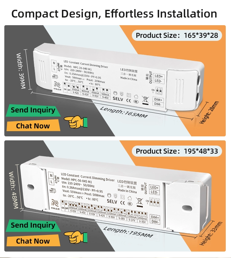 Breite Spannungs- und Hochleistungskompatibilität für stärkere Anpassungsfähigkeit: Die maximale Ausgangsspannung des Stawell-Konstantstrom-LED-Treibers mit 0–10 V-Dimmung beträgt 50 Volt und die maximale Ausgangsleistung beträgt 20 Watt. Es kann mit 3 bis 15 in Reihe geschalteten LED-Bändern kompatibel sein und eignet sich für verschiedene LED-Beleuchtungsprodukte mit einer Leistung von 20 Watt oder weniger, wie z. B. Strahler, Downlights und Flächenleuchten usw. Es ist keine zusätzliche Treiberanpassung erforderlich, wodurch die Auswahl- und Anwendungskosten gesenkt werden.