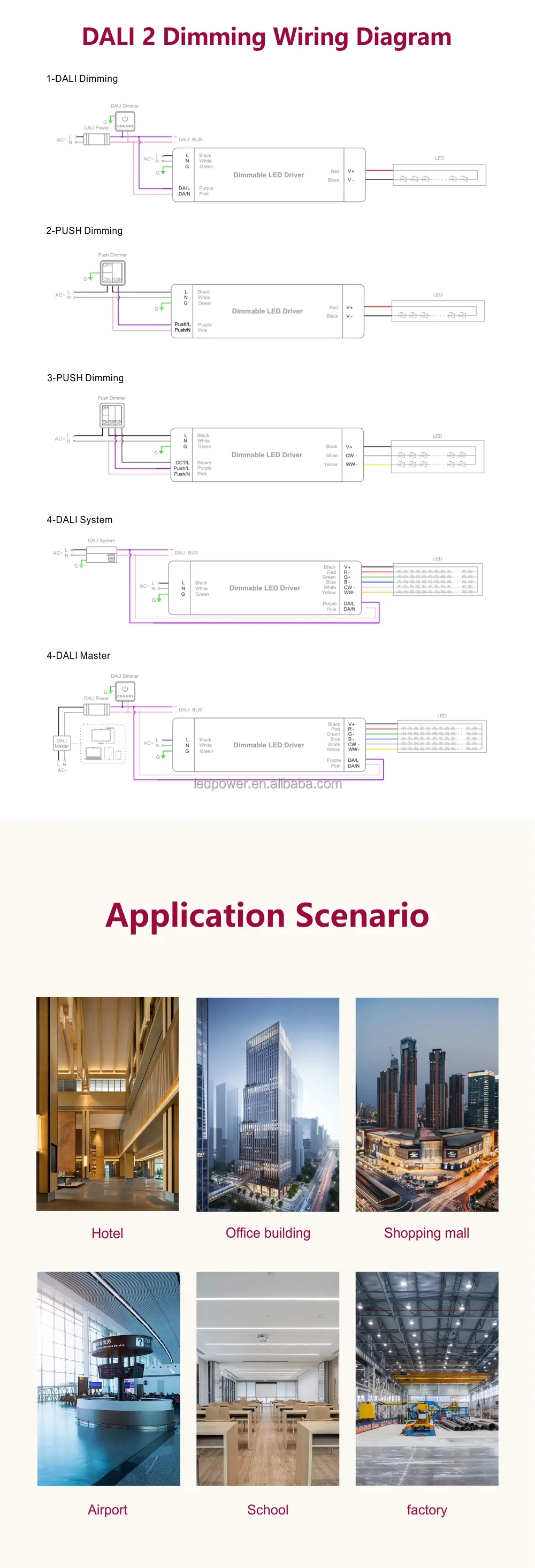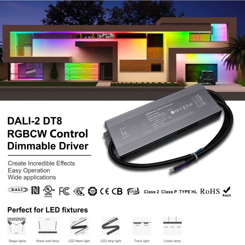 Ganz gleich, ob es sich um einfaches Dimmen einer einzelnen Farbtemperatur oder um eine komplexe 5-Kanal-RGB-CCT-Szenenprogrammierung handelt, dieses Treibernetzteil kann stabil auf Standard-DALI-Anweisungen reagieren. Dies bedeutet, dass Sie es problemlos in jedes intelligente DALI-Beleuchtungssystem integrieren können, um Gruppensteuerung, zeitgesteuerte Programmierung und Sensorverknüpfung zu erreichen. Als zuverlässiger, dimmbarer DALI-LED-Treiber mit 12–24 Volt Konstantspannung sorgt seine hervorragende elektrische Leistung dafür, dass LED-Lichtleisten über einen langen Zeitraum stabil und effizient funktionieren.
