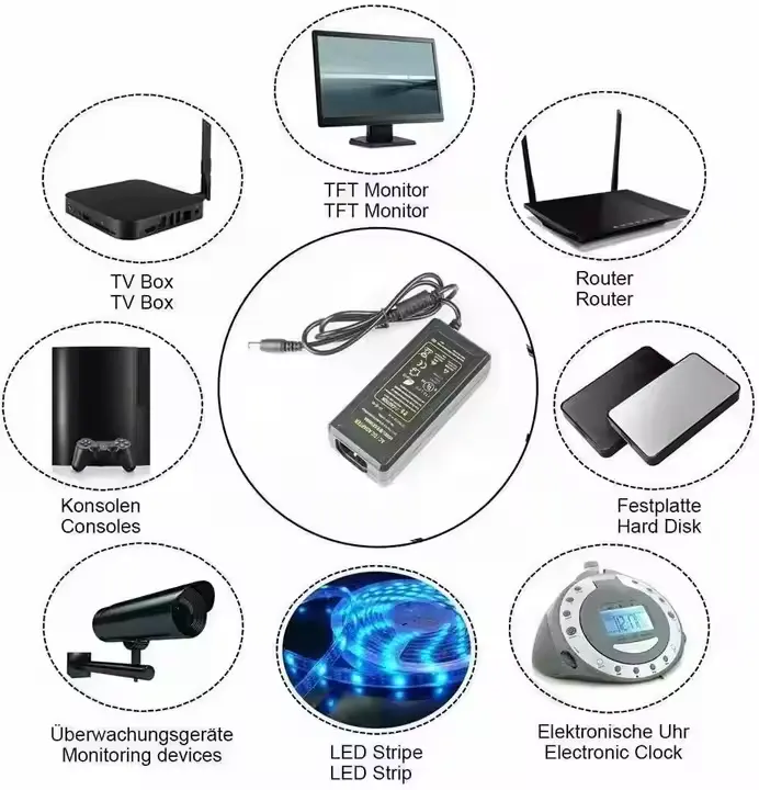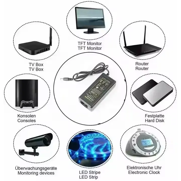 Dieser Adapter ist mit verschiedenen Geräten wie Desktop-Computern, industriellen Steuerungssystemen, medizinischen Geräten und Hochleistungsperipheriegeräten kompatibel und bietet eine vielseitige und zuverlässige Stromversorgungslösung für professionelle und private Anwendungen.