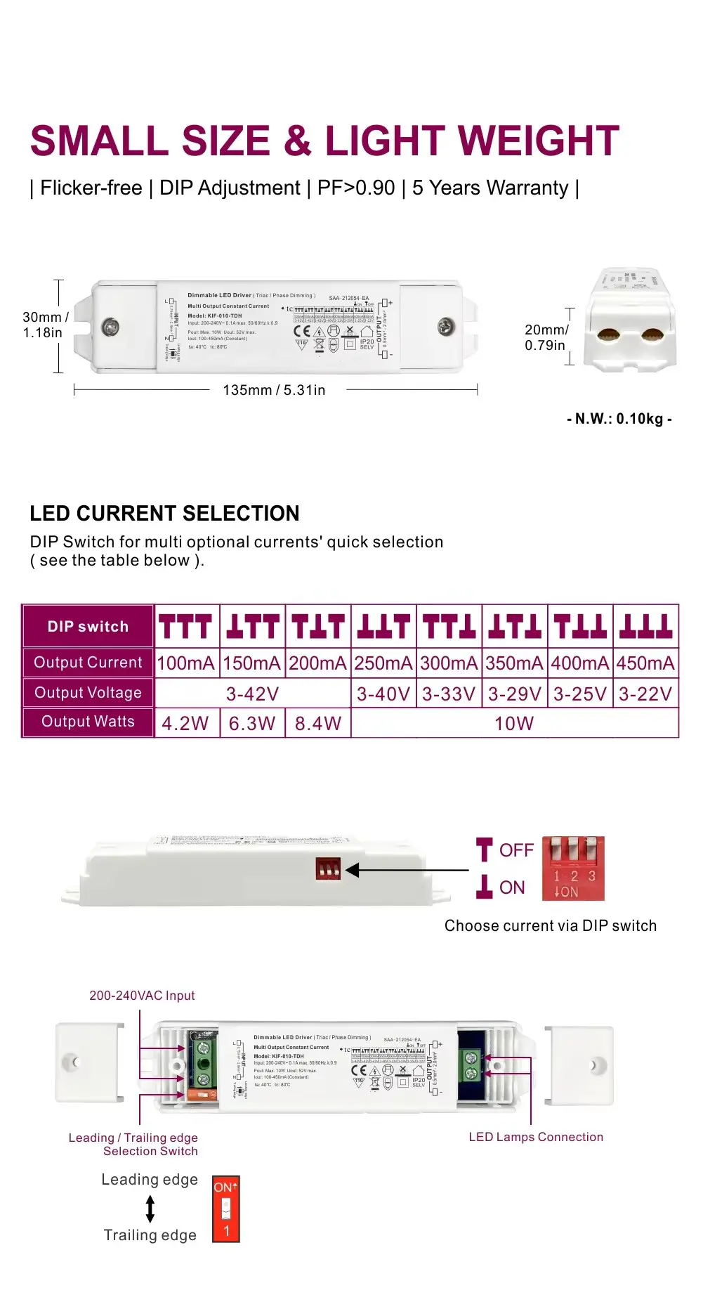 Robuste Leistung und hohe Effizienz: Mit hoher Leistungsfaktorkorrektur (PF>0,9) und niedrigem Gesamtklirrfaktor (THD) erfüllt unser Treiber globale Energieeffizienzanforderungen, reduziert die Belastung Ihres elektrischen Systems und arbeitet mit kühler, zuverlässiger Leistung.