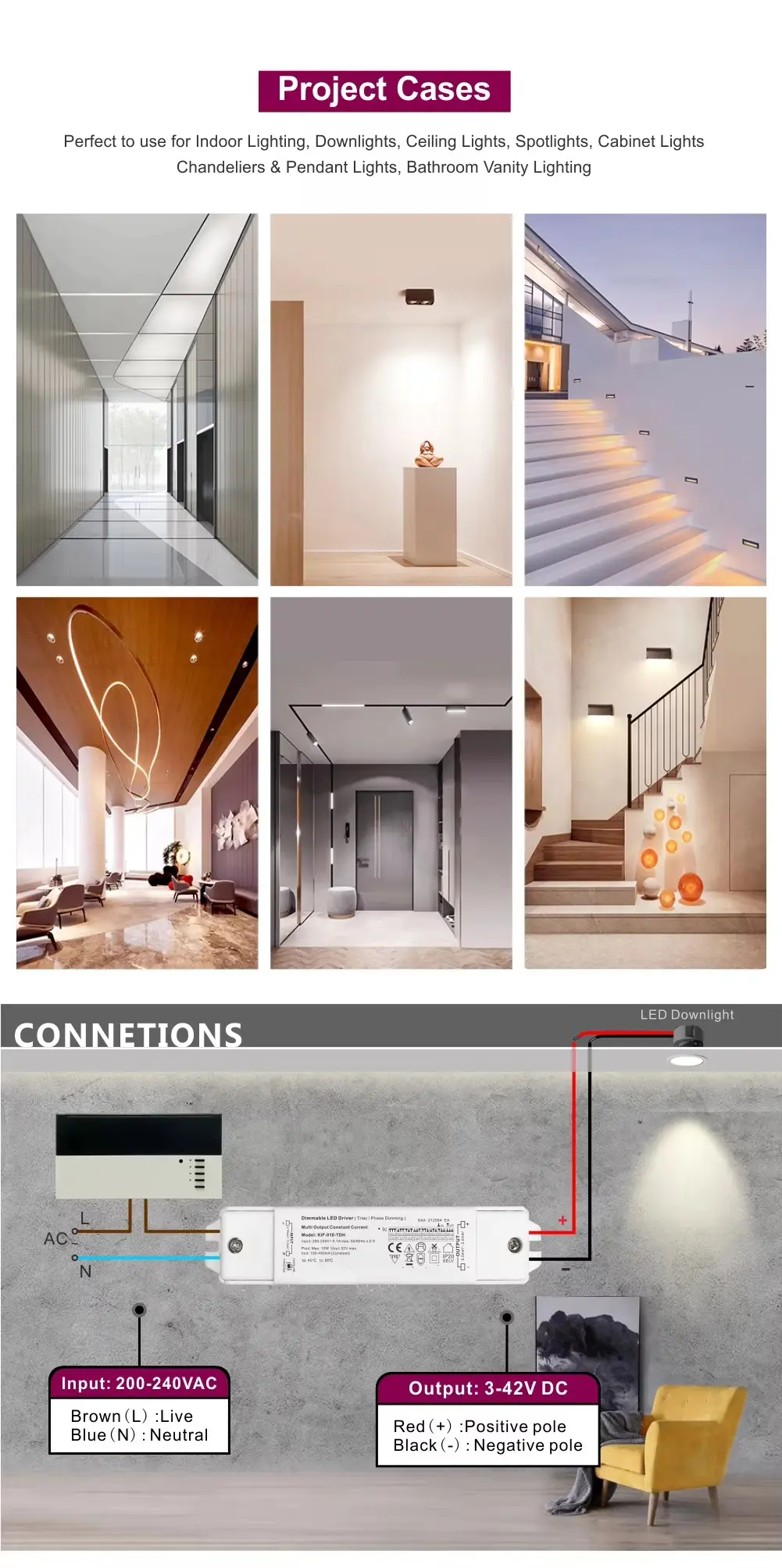 4. Lösen Sie Probleme mit der Dimmkompatibilität. Unser Treiber wurde vorab auf reibungslose Leistung mit einer Vielzahl gängiger TRIAC-Dimmer getestet, wodurch Sie Entwicklungszeit und Supportkosten sparen.