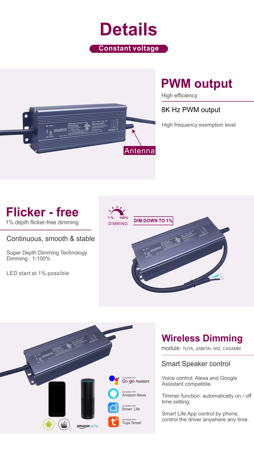 Dieser Tuya Zigbee Wireless Dimming Constant Voltage 120W LED-Treiber ist tief in das Tuya Smart-Ökosystem integriert und nutzt das neueste Zigbee 3.0-Kommunikationsprotokoll für nahtlose, bidirektionale Kommunikation.