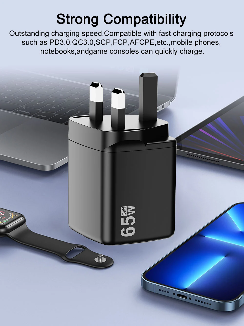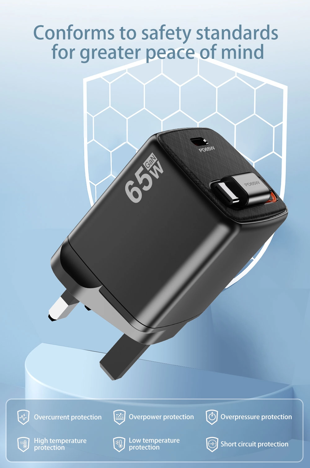 65-W-Schnellladegerät mit UK-Stecker. Spezifikation: