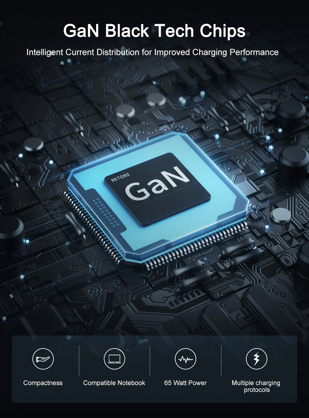 - Schnelles Laden: Die 65-W-Leistung verkürzt die Ladezeit und sorgt dafür, dass Ihre Geräte schnell aufgeladen werden.
